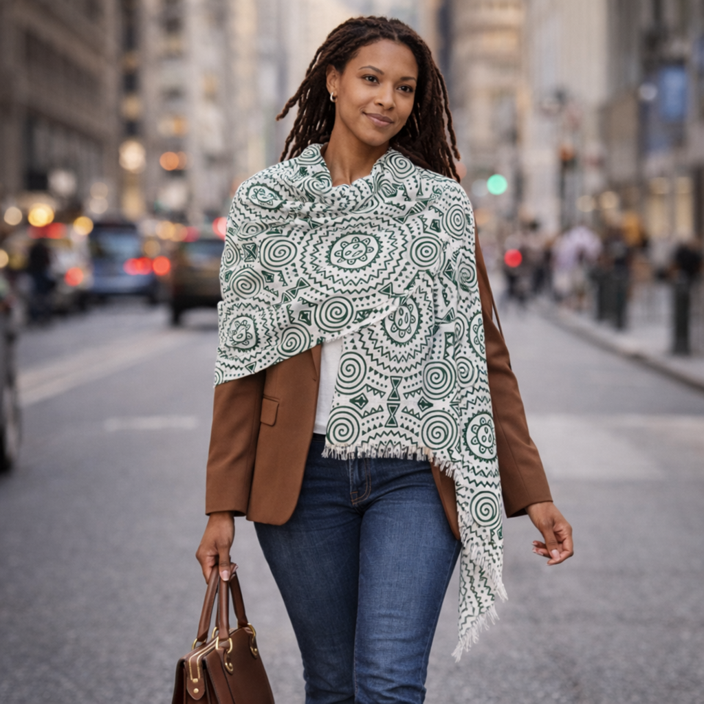 These examples highlight how I use AI as part of my apparel design and e-commerce workflow, from concept development through final product presentation. The scarf pattern, pillow design, and T-shirt graphic were all original designs conceived and directed by me, using AI to explore form, symbolism, and composition before finalizing the artwork.